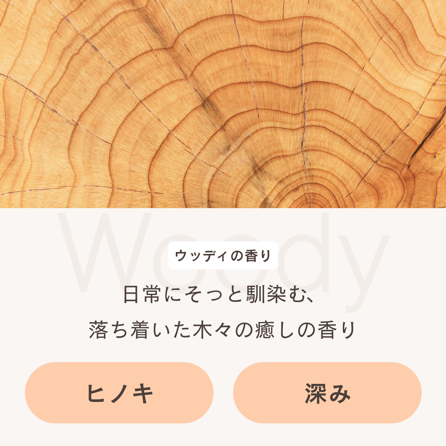ひと息つく静けさを届けてくれる、ヒノキの香りに包まれます。せわしない一日の終わりにそっと寄り添ってくれるアイテムを探している方におすすめです。